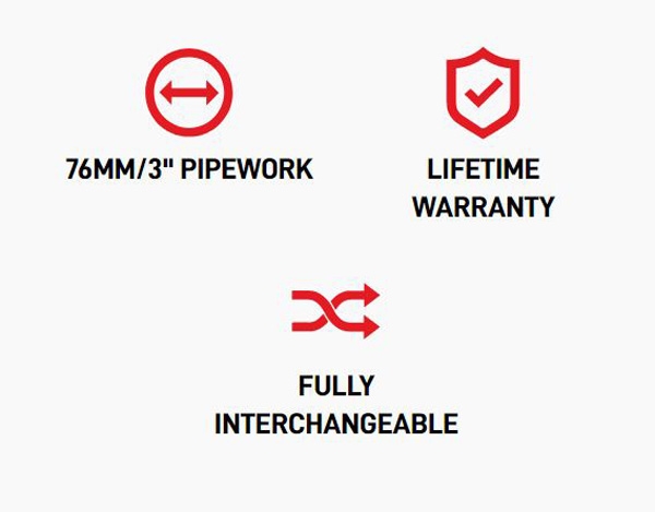 Turboladede motorer skal kunne ånde. For at hjælpe dette er der udviklet en række turbo-nedløbsrør, der passer til højdrevne turboapplikationer. For at muliggøre en stigning i ydeevnen matcher Scorpion rørdiametrene for de højeste ydeevnegevinster.