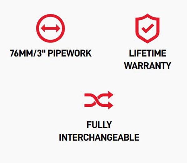 Turboladede motorer skal kunne ånde. For at hjælpe dette er der udviklet en række turbo-nedløbsrør, der passer til højdrevne turboapplikationer. For at muliggøre en stigning i ydeevnen matcher Scorpion rørdiametrene for de højeste ydeevnegevinster.