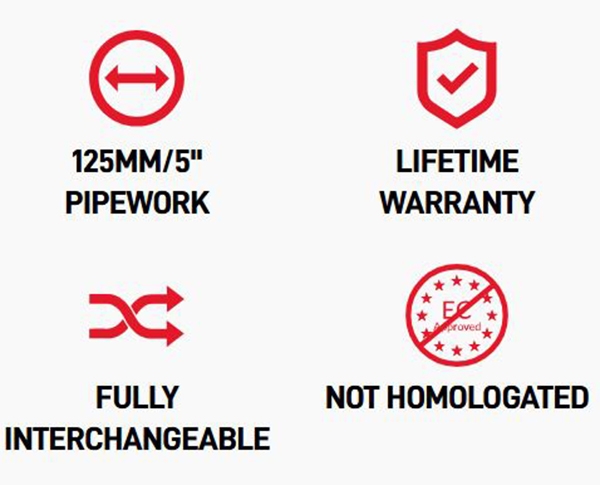 Når systemet er monteret, sikrer de akustisk afstemte lyddæmpere — med specialdesignede interne strukturer (på systemer med midterlyddæmper eller bagpotte) — samt præcisions-CNC-mandrelbøjede rør en mere effektiv udledning af motorens gasser. Resultatet er forbedret effekt, skarpere throttle response og reduceret vægt takket være den fulde konstruktion i rustfrit stål. Systemet er designet til lang holdbarhed, selv under de hårdeste forhold.