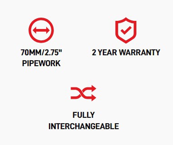 Turboladede motorer skal kunne ånde. For at hjælpe dette er der udviklet en række turbo-nedløbsrør, der passer til højdrevne turboapplikationer. For at muliggøre en stigning i ydeevnen matcher Scorpion rørdiametrene for de højeste ydeevnegevinster.