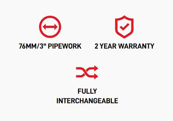 Turboladede motorer skal kunne ånde. For at hjælpe dette er der udviklet en række turbo-nedløbsrør, der passer til højdrevne turboapplikationer. For at muliggøre en stigning i ydeevnen matcher Scorpion rørdiametrene for de højeste ydeevnegevinster.