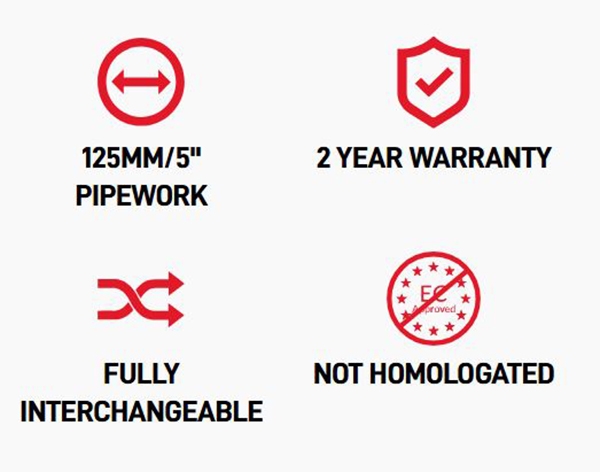 Vi tilbyder et udvalg af bagrørsstilarter og finish, herunder dobbelt 115mm poleret/sort keramisk Daytona, poleret lige-skåret STW eller vores signatur carbon Ascari.