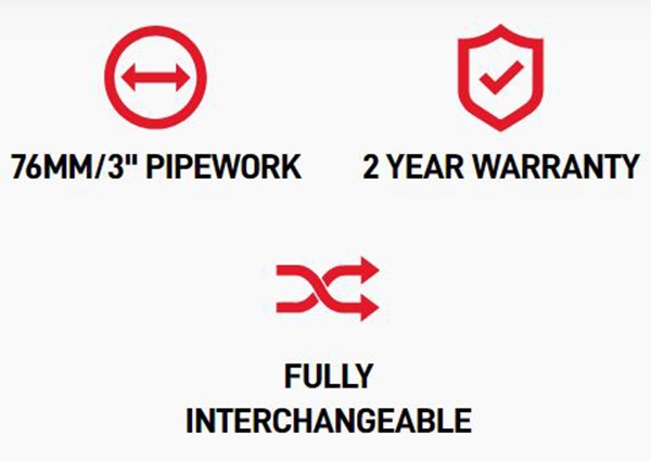 Turboladede motorer skal kunne ånde. For at hjælpe dette er der udviklet en række turbo-nedløbsrør, der passer til højdrevne turboapplikationer. For at muliggøre en stigning i ydeevnen matcher Scorpion rørdiametrene for de højeste ydeevnegevinster.