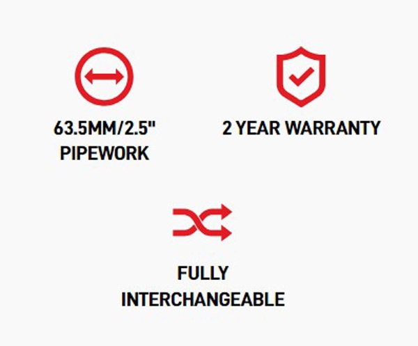Turboladede motorer skal kunne ånde. For at hjælpe dette er der udviklet en række turbo-nedløbsrør, der passer til højdrevne turboapplikationer. For at muliggøre en stigning i ydeevnen matcher Scorpion rørdiametrene for de højeste ydeevnegevinster.