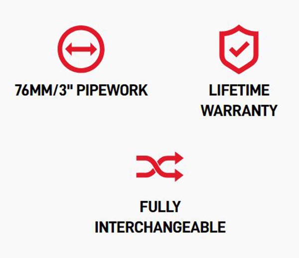 Turboladede motorer skal kunne ånde. For at hjælpe dette er der udviklet en række turbo-nedløbsrør, der passer til højdrevne turboapplikationer. For at muliggøre en stigning i ydeevnen matcher Scorpion rørdiametrene for de højeste ydeevnegevinster.