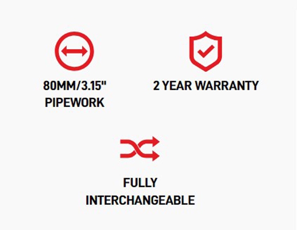 Turboladede motorer skal kunne ånde. For at hjælpe dette er der udviklet en række turbo-nedløbsrør, der passer til højdrevne turboapplikationer. For at muliggøre en stigning i ydeevnen matcher Scorpion rørdiametrene for de højeste ydeevnegevinster.