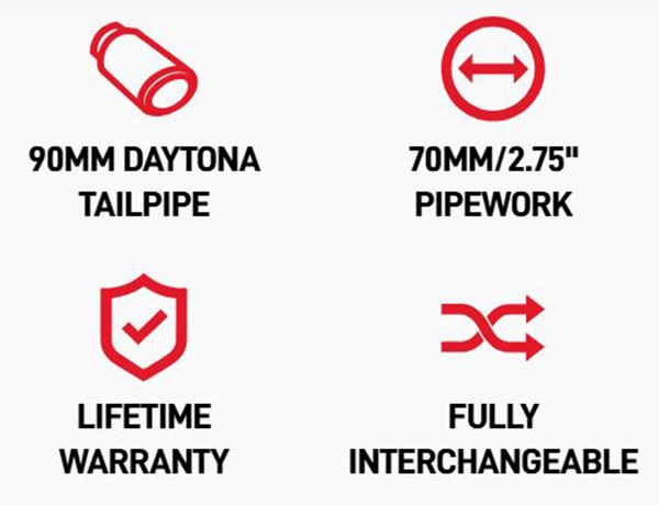 Valg mellem quad Daytona-udstødningsrør i poleret eller sort keramisk finish