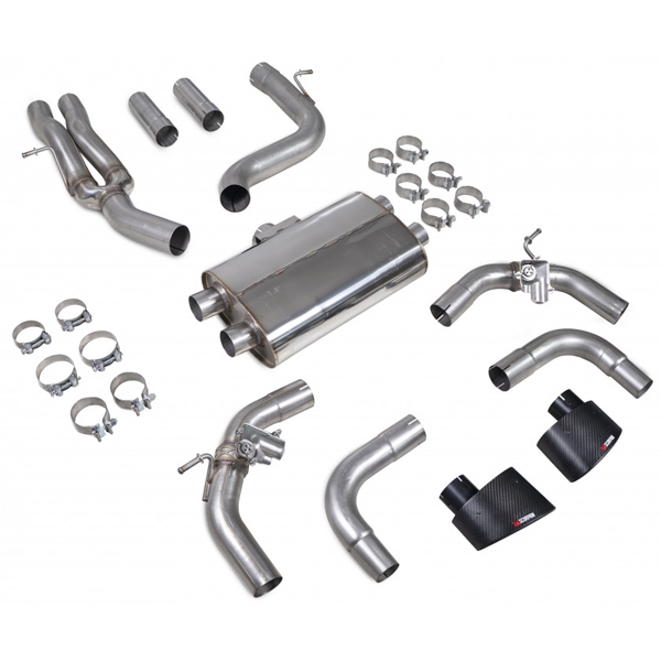 Vores performance-system tilbyder også ventileret (med ventil) eller non-ventileret (uden ventil), afhængig af førerens smag eller krav. Den ventilerede mulighed giver et udstødningssystem, der udnytter de originale motorer, som betjenes af føreren med drive mode-knappen inde i bilen. Når disse ventiler er lukkede, får du en meget mere stille, men stadig dyb tone fra Scorpion-systemet, perfekt til lange køreture. Åbner du derimod ventilerne, vil du høre 80mm/3,14" systemet i sin fulde kapacitet. Den non-ventilerede mulighed fjerner ventilerne helt for en konstant sporty tone, bedst egnet til dem, der ønsker en maksimal støj hele tiden.