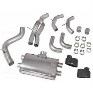 Udstødningssystemet RS3 er fremstillet af førsteklasses 80 mm/3,14" T304 rustfrit stål og tilbydes til både biler med partikelfilter (GPF) og biler uden partikelfilter. Når det monteres på en bil uden GPF eller en bil med en sports-/de-cat downpipe, anbefaler vi at bruge vores resonerede system for at forhindre indtrængen af irriterende lyde i kabinen. Når det monteres på en bil med GPF, anbefaler vi at bruge vores ikke-resonerede system for at give bilens lyd den fulde kraft.