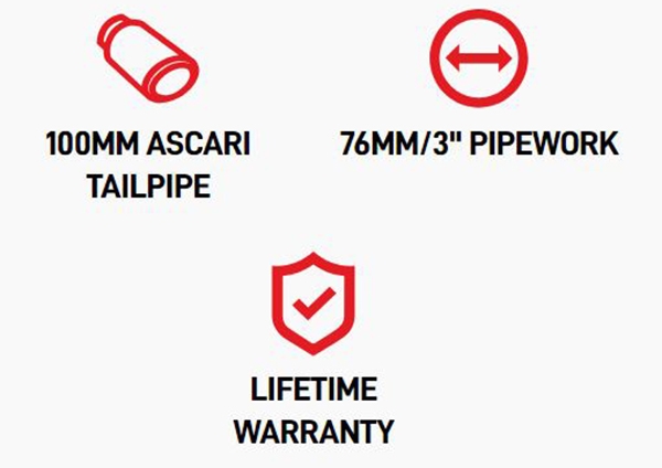 Tilgængelig til brug er et T304 rustfrit stål 76 mm resonant eller ikke-resonant, højstrøm GPF-bagudrettet udstødningssystem med ventilplade til OE-ventil eller en ikke-ventil mulighed. Systemet er udviklet med en profil med høj strømning og en akustisk bageste lyddæmper for at eliminere dronen, men forbedre ydeevnen såvel som lyden.