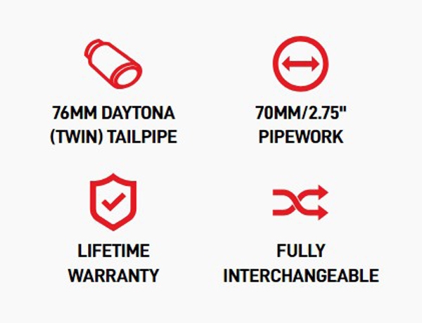 • 76 mm Daytona (Dobbelt) Afgangsrør