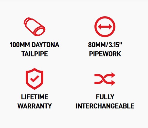Daytona: Denne design behøver ingen introduktion, den klassiske Scorpion Daytona slash-cut stil med et moderne twist på et tidløst look. Daytona er et godt valg til alt fra hot hatchbacks til flagkship autobahn saloons.