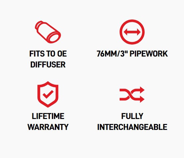Dette system passer til de originale indbyggede OEM enderør i bagdiffusoren.