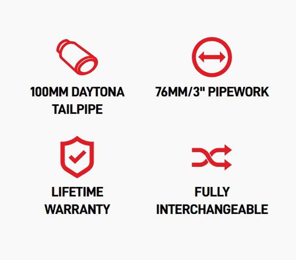 • Valg af dual poleret/sort keramisk Daytona, poleret STW eller carbon Ascari afgangsrør (Challenge er kun poleret STW)