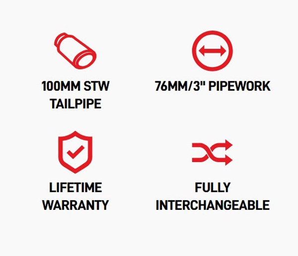 Disse udstødninger er tilgængelige i to muligheder: resonante (udstyret med en center dæmper for at reducere drone og give en mere raffineret lyd) eller ikke-resonante (som fjerner den originale dæmper for en højere lyd).
