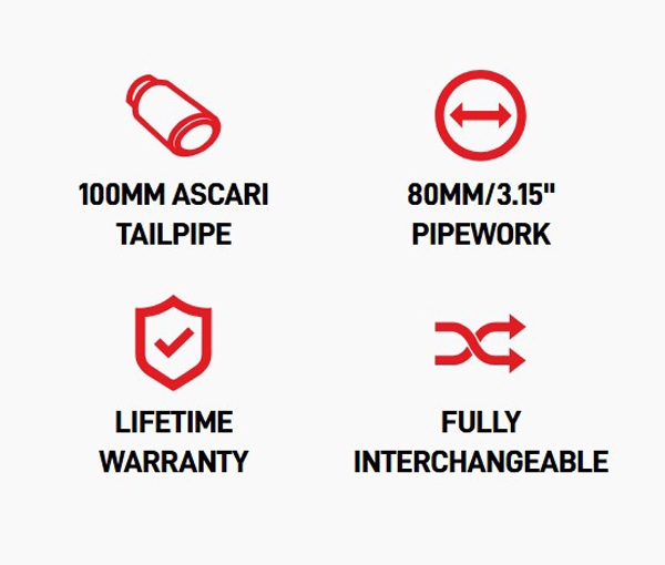 Ascari: Vores premium sport option, kun tilgængelig i en mat carbon finish, fremhæver den karakteristiske sporty carbon væv. Den to-delte flydende konstruktion med en indre børstet rustfri stålindsats tillader varme gasser at passere igennem uden at misfarve eller svække det ydre carbonskel.