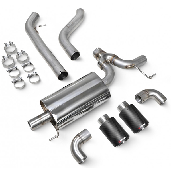 Performance GPF-back systemet tilbydes sammen med vores high flow GPF-delete, der fjerner den restriktive GPF og giver B48-motoren mulighed for at blive hørt ved fuld potentiale. Scorpions giver bilen en målbar reduktion i vægt sammenlignet med det originale udstødningssystem. Dette er en forbedring, der ikke kan undervurderes, fordi vægtreduktion er en afgørende komponent for ydeevne, når maskinen møder vejen.