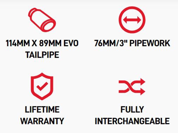 • 114mm X 89mm EVO udstødningsrør