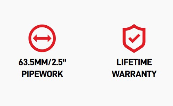Dette udstødningssystem er ikke-resonator, hvilket betyder, at det kommer uden center-silencer. Fjernelsen af den originale silencer resulterer i en højere lyd.