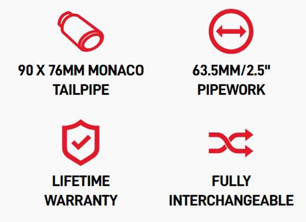 • 90 X 76mm Monaco udstødningsrø