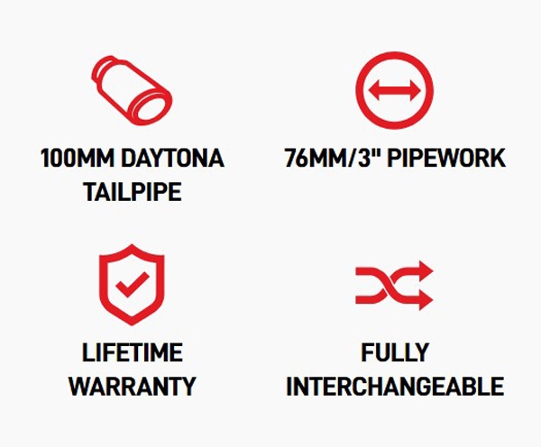• Valg af dual polerede/sorte keramiske Daytona, polerede STW eller carbon Ascari tailpipes (Challenge kun polerede STW)