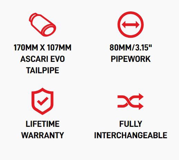 • 170 mm X 107 mm Ascari Evo Udstødningsrør