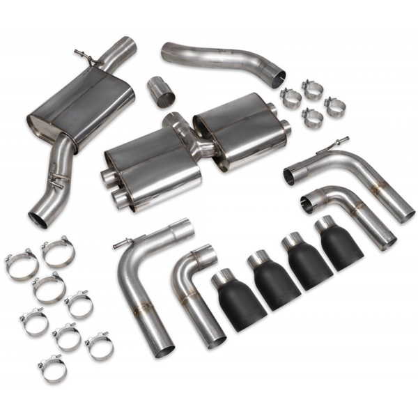 Produceret af førsteklasses 80mm/3,14" T304 rustfrit stål giver den CNC-bøjede store diameter-design maksimal ydeevne ved at tillade en større strømning af gasser. De tilgængelige muligheder er resonansventileret, resonans uden ventil, ikke-resonans ventileret og ikke-resonans uden ventil. Ventileret udgave bruger den originale motor og kan betjenes af føreren med drive mode-select-knappen inde i bilen. Der er også en ikke-ventileret udgave, der fjerner ventilen helt for en kontinuerlig mere sportslig tone.