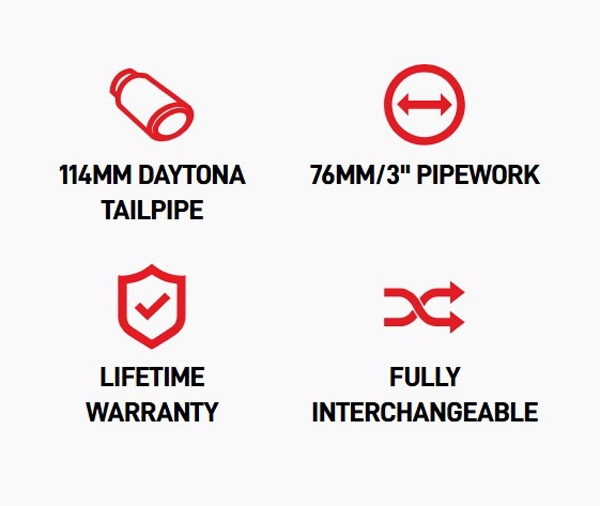 Vore erfarne teknikere har udviklet et 76mm/3” GPF-back (mere stille) eller Predator GPF-back system (højere lyd), som kan vælges som enten resonator (mere stille) eller ikke-resonator (højere lyd). Vi tilbyder et udvalg af aftapningsstile og finish, og du har mulighed for tvillings 114mm polerede/sorte keramiske Daytona, polerede/sorte keramiske Indy eller vores signaturcarbon Ascari.