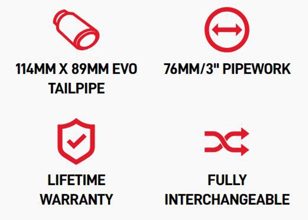 • 114mm X 89mm EVO udstødningsrør