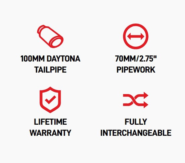 Daytona: Denne design har ikke brug for en introduktion, den klassiske Scorpion Daytona slash-cut stil med et moderne twist på et tidløst look. Daytona er et fantastisk valg til alt fra hot hatchbacks til topmoderne autobahn saloons.