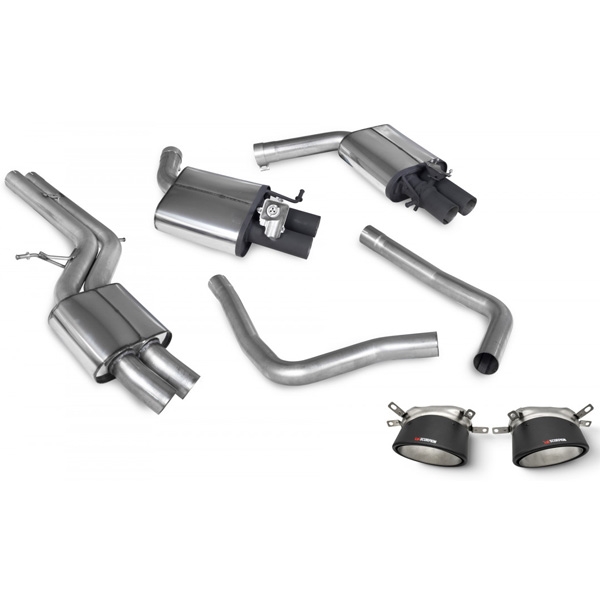 Der er udviklet to varianter, en resonatorversion, der er perfekt egnet til dem, der ønsker en mere civiliseret performance-lyd, der kan være bedre egnet til daglig kørsel, og en ikke-resonatorisk mulighed for den komplette Scorpion lydoplevelse! Passer sømløst med Audis OEM forreste resonatorsektion. For dem, der ønsker at forbedre deres køreoplevelse yderligere ved at frigive lyden af deres RS6's V8, tilbyder Scorpion flexrør til sletning af forreste resonator, hvilket betyder, at købere kan opgradere deres udstødningstrinvis.