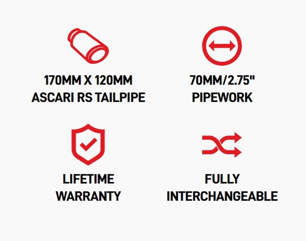 Ascari RS trims er kompatible med både OEM og eftermarkedets udstødningssystemer, der passer til de indbyggede OEM omkredse, hvilket muliggør en problemfri udskiftning. De er tilgængelige for køb sammen med vores system eller som et enkeltstående opgradering.