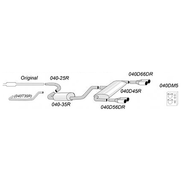 The system has a larger pipe dimension than the original, 5-8% higher power, sporty sound and sporty outlet pipe. Low back pressure results in lower fuel consumption. Long service life due to the good quality.