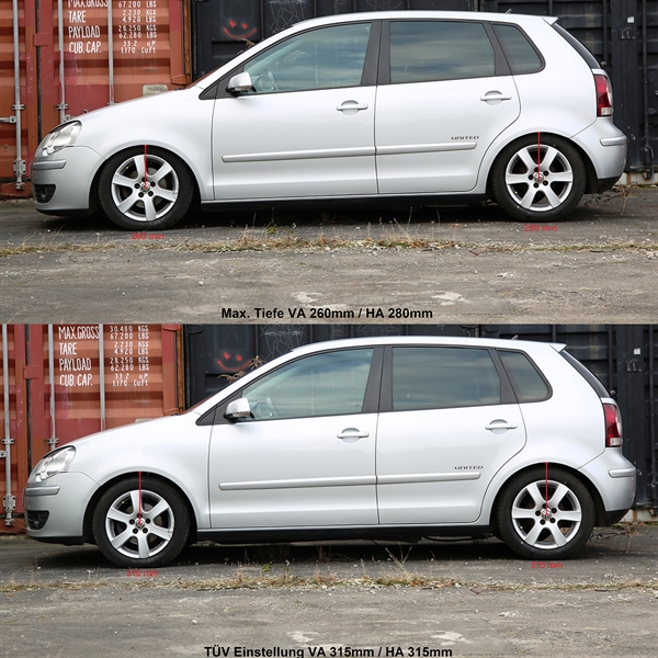 Deep Version Gevindundervogne fra TA-Technix er dog kun TÜV godkendt til 60mm, men kan sænkes med hele 120mm – for de nøjagtige detaljer omkring lige nøjagtigt din bil, se da beskrivelsen længere oppe.