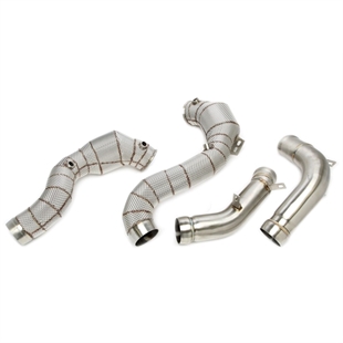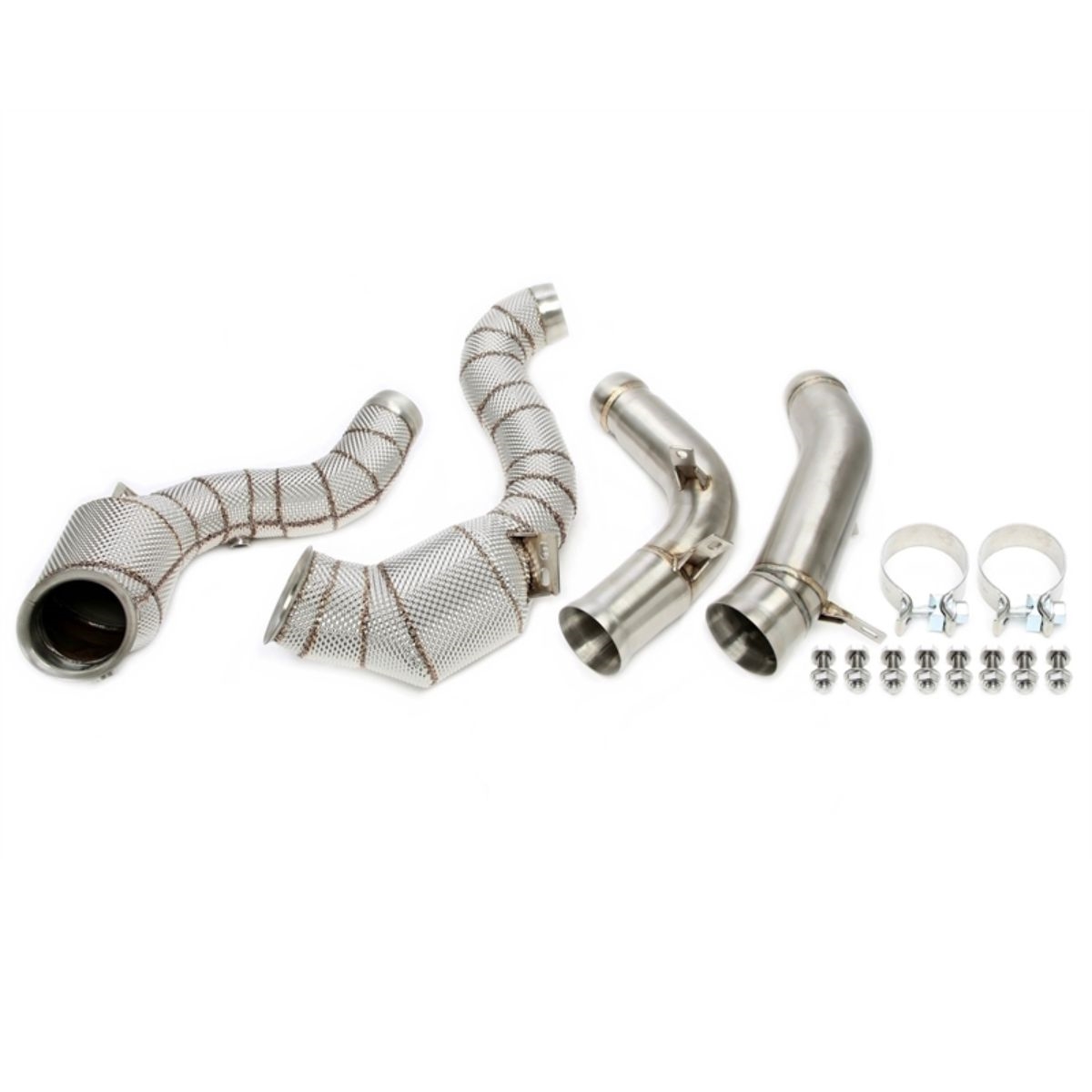 TA-Technix Downpipe til Mercedes Benz E-klasse Type W213. En downpipe er også kendt som et forrør og er den del af udstødningen, som monteres på motoren lige efter turboladeren. Formålet med en downpipe er at give et mere effektivt flow af udstødningsgas fra turboen og bagud.