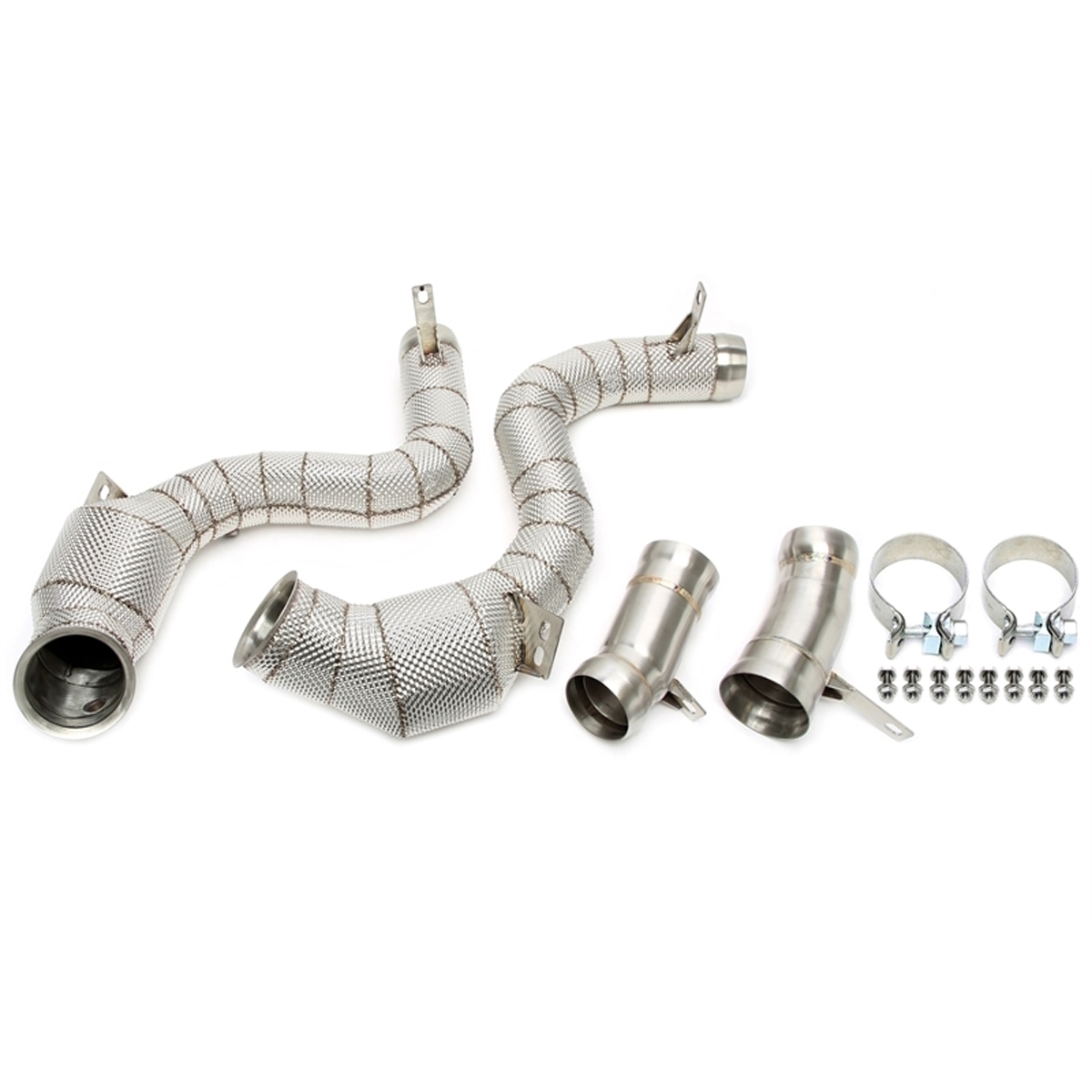 TA-Technix Downpipe til Mercedes-Benz S-klasse AMG S63 W222. En downpipe er også kendt som et forrør og er den del af udstødningen, som monteres på motoren lige efter turboladeren. Formålet med en downpipe er at give et mere effektivt flow af udstødningsgas fra turboen og bagud.