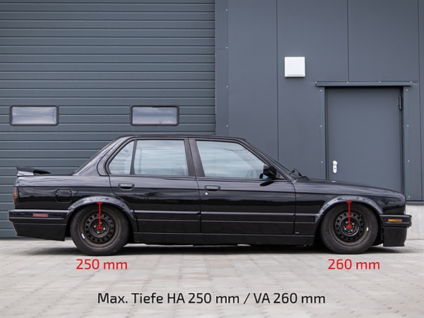 Afstanden mellem hjul/dæk og støddæmperen bør være mindst 5 mm. Hvis afstanden er mindre, skal minimumsafstanden etableres ved passende foranstaltninger. Ved brug af standardhjul/dækkombinationer kræves kommercielt tilgængelige afstandsstykker (hjulafstandsstykker).