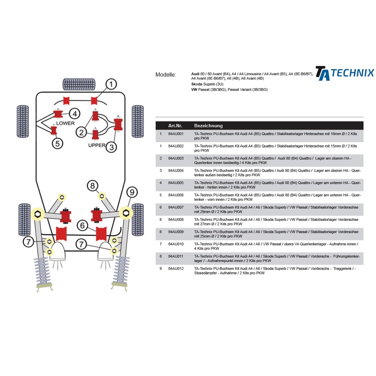 TA-Technix Poly Bøsning Audi A4 B584AU002_Einbauposition 84AU002