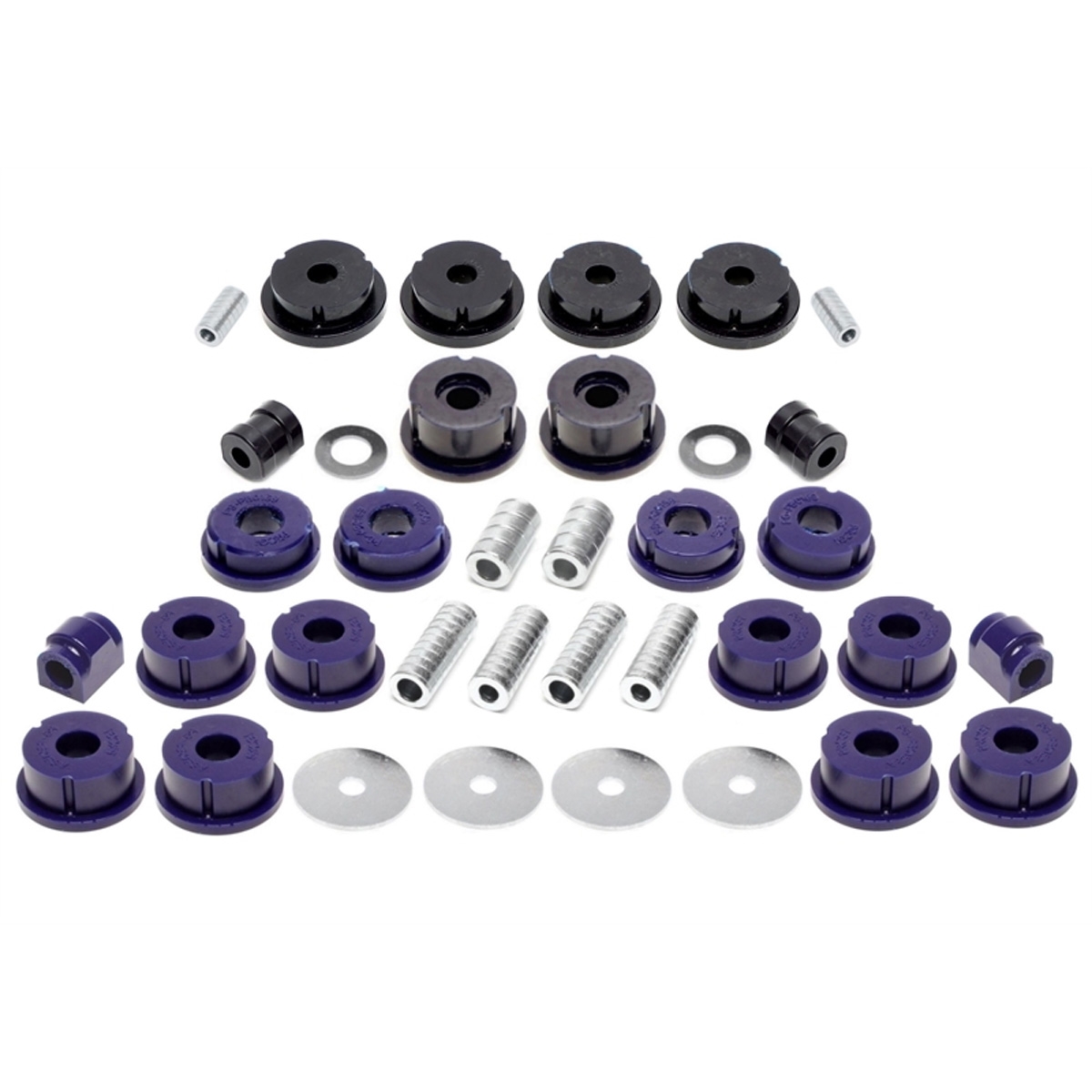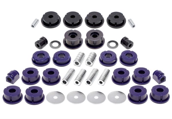 PU-bøsninger fra TA Technix er lavet af slidstærkt polyurethan og erstatter de originale gummibøsninger i affjedringen. De giver mere præcis styring, mindre deformation under belastning – ideelt til både sportslig og daglig brug.