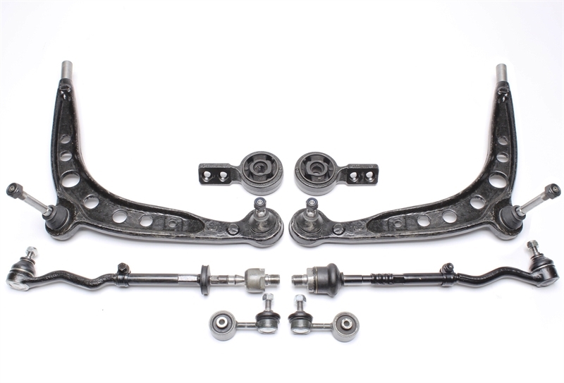 Indeholder: TA Technix control arm Front axle, left-side OEM-Partnumber: 31121127725 TA Technix control arm Front axle, right-side OEM-Partnumber: 31121127726 TA Technix coupling rod "short" Front both side OEM-Partnumber: 31 35 1 091 764, 31 35 1 127 689, 31 35 1 128 737 TA Technix control arm-rubber/metal mounting Front axle, left-side OEM-Partnumber: 31121136531 TA Technix control arm-rubber/metal mounting Front axle, right-side OEM-Partnumber: 31121136532 TA Technix track rod incl. trailer ball Front axle, left-side OEM-Partnumber: 32111125186 TA Technix track rod incl. trailer ball Front axle, right-side OEM-Partnumber: 32111125187