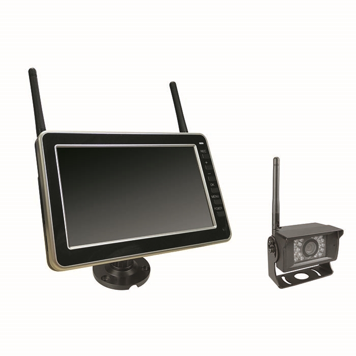 Trådløst kamerasæt med 4 stk. kamera og 7" skærm. Perfekt til køretøjer, hvor det kan være svært at montere ledninger. Eksempelvis på skovmaskiner og lignende.