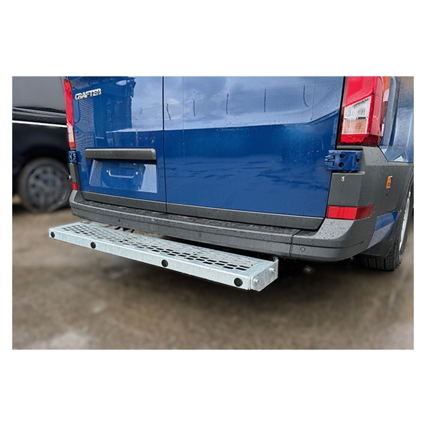 Praktisk trinbræt til varevogne uden anhængertræk. Giver nem og sikker adgang til varerummet, reducerer belastning ved ind- og udstigning og beskytter bilens bagende mod stød og ridser.