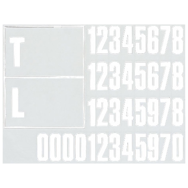 Vægttavle til markering af Totalvægt og Lastevne. De ønskede tal flyttes nemt over på den store klæber, som derefter placeres på traileren.