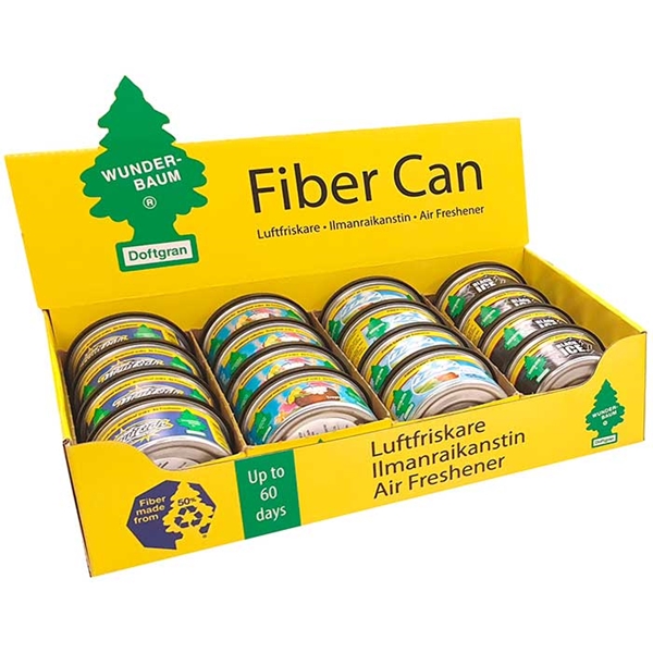 Nu kan du bestille et smart display med hele 16 duftdåser af 4 forskellige varianter til din butik. Du får både den klassiske New Car duft, den frugtaromatiske Tropical, den friske Summer Cotten eller Black Classic, der bringer den originale duft fra Wunderbaum.